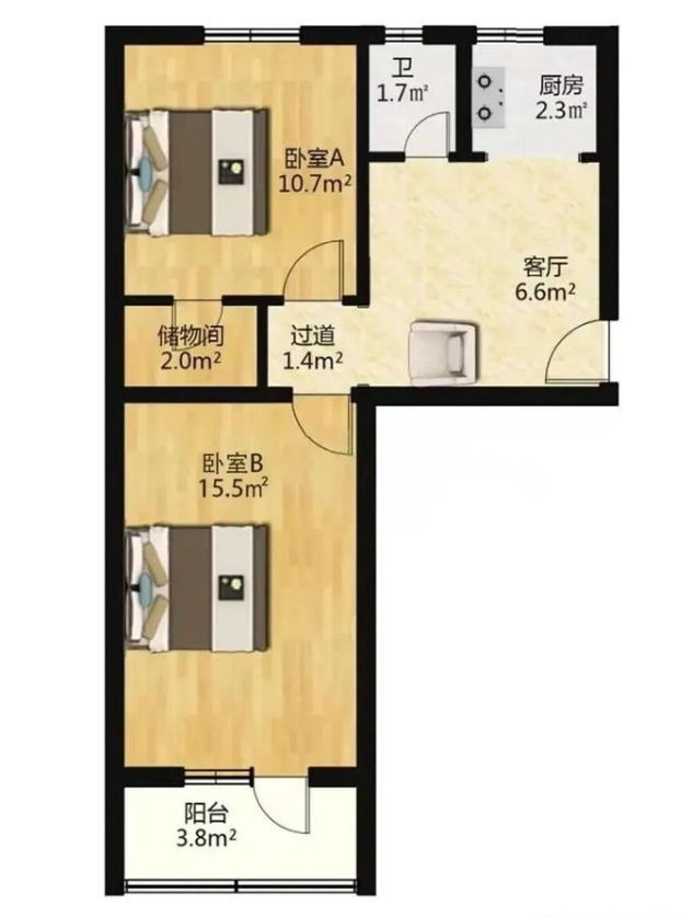 活动区和休息区搅在一起毫无章法、卫生间没窗户常年又潮又臭、厨房藏在角落还带个用不上的拐角……